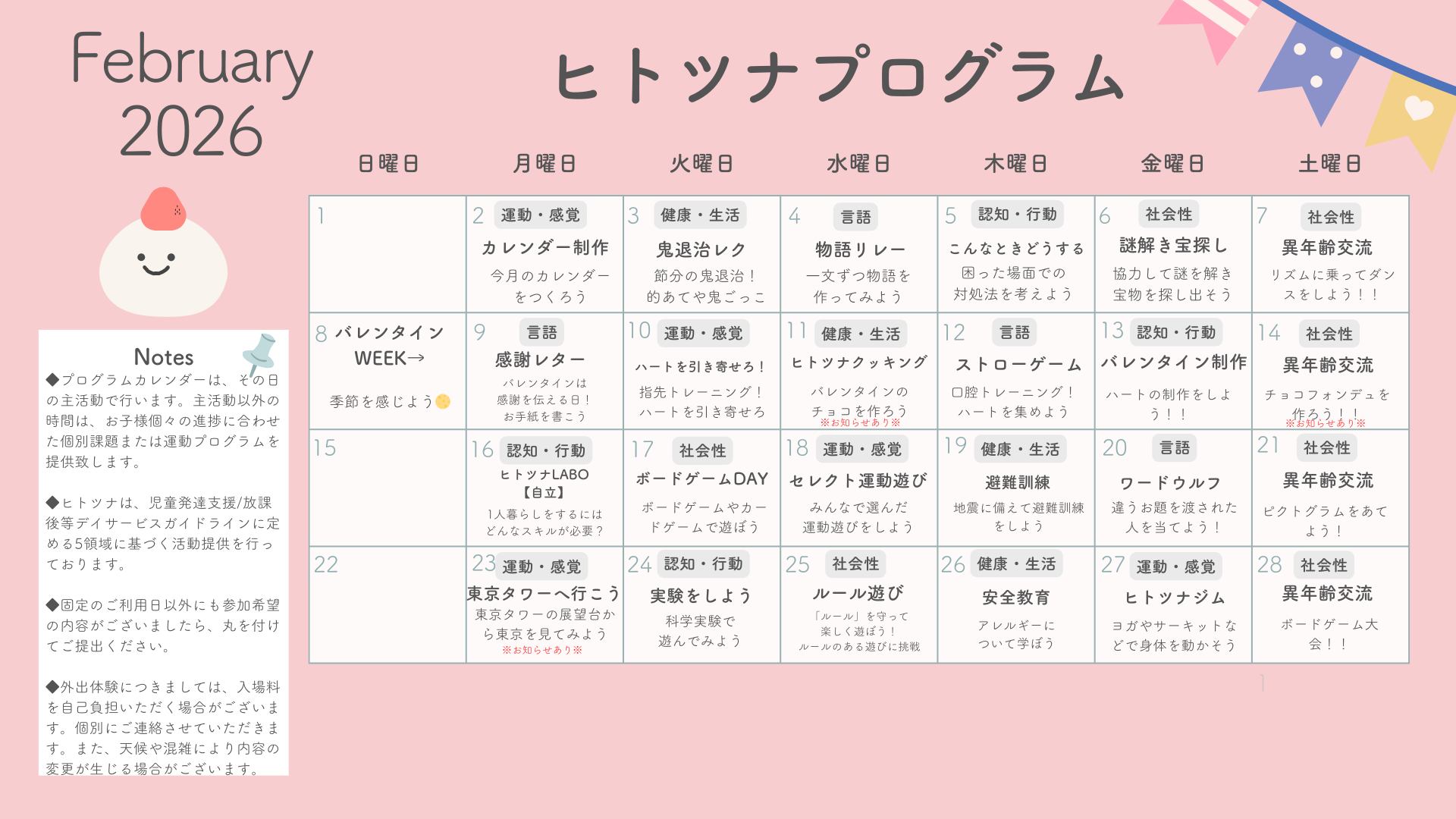 2月のプログラムカレンダーです⛄